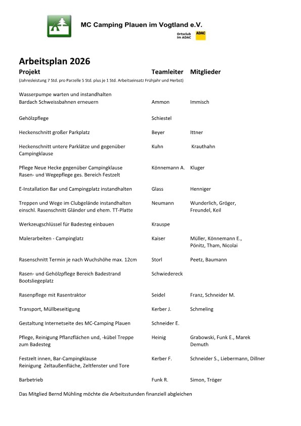 Arbeitsplan